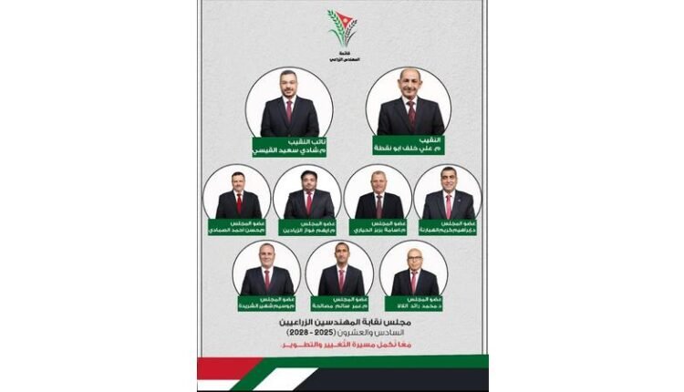 أعلن رئيس اللجنة المشرفة على انتخابات نقابة المهندسين الزراعيين المهندس ناجح العدوان فوز “قائمة المهندس الزراعي” برئاسة المهندس علي أبو نقطة بجميع مقاعد مجلس نقابة المهندسين الزراعيين السادس والعشرين 2025-2028 بالتزكية.