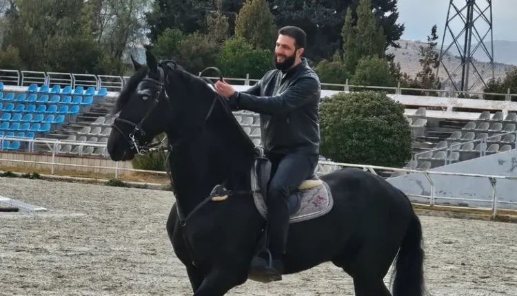 فقد ظهر الشرع في صورة على حصان أسود نشرها له الإعلامي موسى العمر الذي رافقة قي إطلالة كثيرة خلال الفترة الماضية، عبر حسابه الرسمي في منصة X.