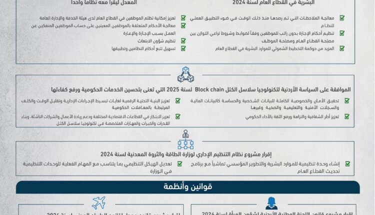 وافق مجلس الوزراء في جلسته التي عقدها اليوم السبت، على السياسة الأردنية لتكنولوجيا سلاسل الكتل (Block chain) لسنة 2025 التي تعنى بتحسين الخدمات الحكومية ورفع كفاءتها.