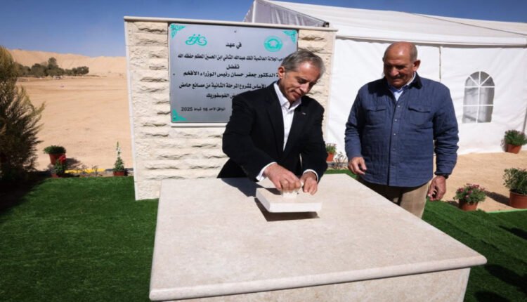 وضع رئيس الوزراء جعفر حسان، الأحد، حجر الأساس لمشروع المرحلة الثانية من مصانع حامضي الكبريتيك والفوسفوريك، في منطقة الشيدية في قضاء الجفر بمحافظة معان، العائد لشركة مناجم الفوسفات، والذي تقدر كلفته بـ250 مليون دينار، ومن المتوقع أن يوفر قرابة 300 فرصة عمل مباشرة و500 فرصة عمل غير مباشرة.
