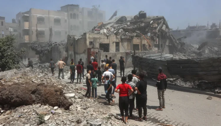 فلسطينية تصرخ عقب غارة إسرائيلية على مدينة غزة يوم الجمعة (رويترز)