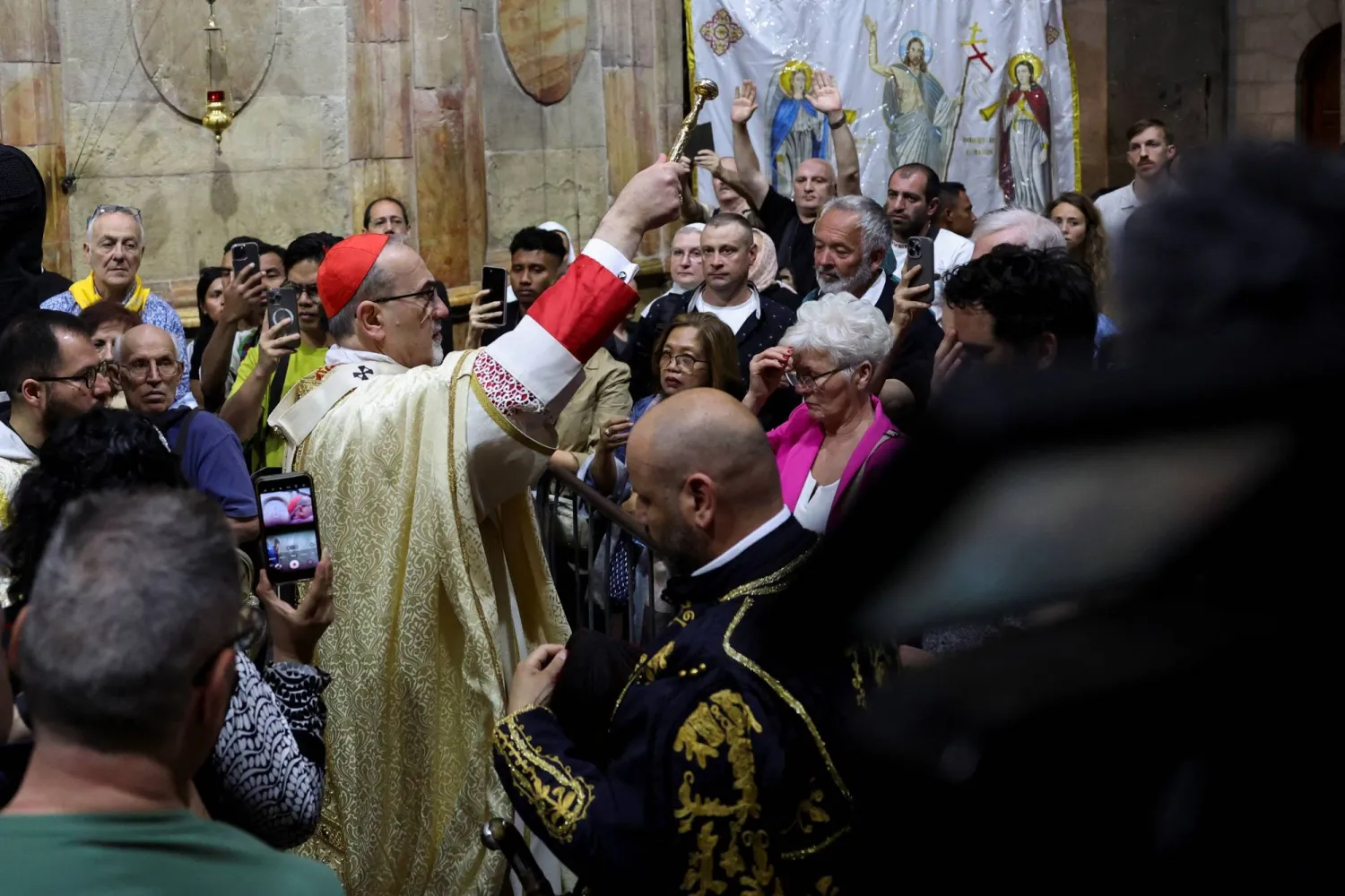وأعرب بطريرك القدس، الكاردينال بييرباتيستا بيتسابالا، في قداس عيد الفصح بكنيسة القيامة في البلدة القديمة بالقدس، عن القلق إزاء احتمال تدهور الوضع السياسي وتفاقم الكارثة الإنسانية في الأراضي الفلسطينية، وصلَّى من أجل السلام والعدل.