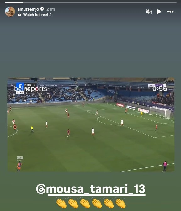 أعاد سمو الأمير الحسين بن عبد الله الثاني،ولي العهد نشر مقطع فيديو عبر خاصية “الستوري” على حسابه الشخصي على موقع “إنستغرام” لأحد أهداف النجم الأردني موسى التعمري الذي يلعب في صفوف فريق مونبلييه الفرنسي في شباك نادي موناكو الفرنسي.