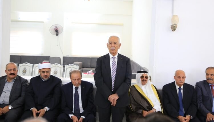 ونقل العيسوي، خلال زيارته بيت عزاء الفقيد، في محافظة إربد، تعازي ومواساة جلالة الملك وسمو ولي العهد، إلى ذوي الفقيد وعموم عشيرة الطبيشات، سائلاً المولى عز وجل أن يتغمده بواسع رحمته ويسكنه فسيح جنانه، وأن يلهم أهله وذويه الصبر والسلوان.